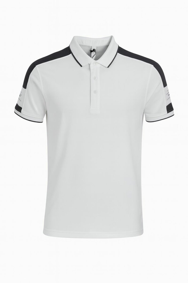 Élégant polo blanc pour homme avec des rayures contrastées modernes sur les manches. Idéal pour un look à la fois décontracté et raffiné. Confectionné en tissu respirant, parfait pour toute saison.
