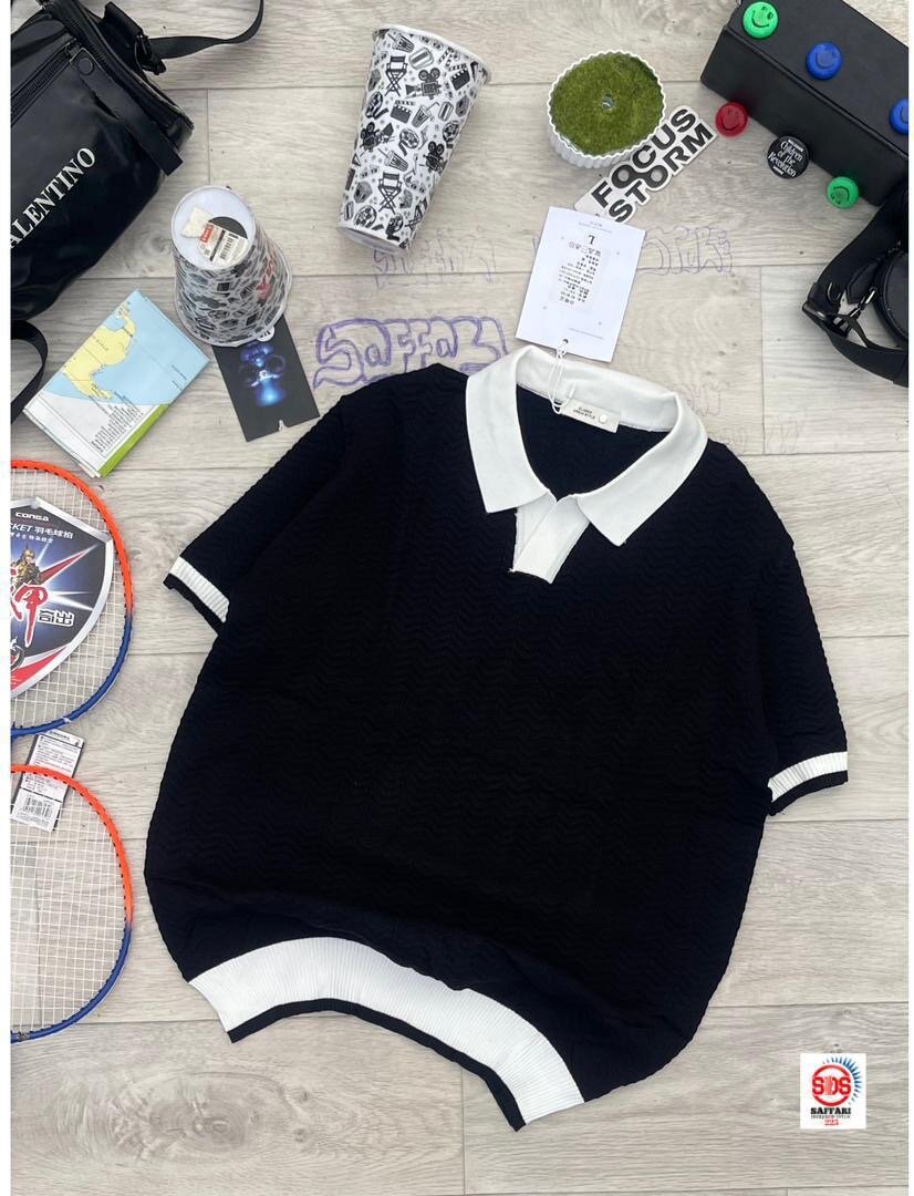 Polo élégant noir à col blanc, parfait pour un look décontracté et raffiné. Confortable et versatile, idéal pour les sorties ou le bureau. Faite de matériaux de qualité pour une durabilité accrue.