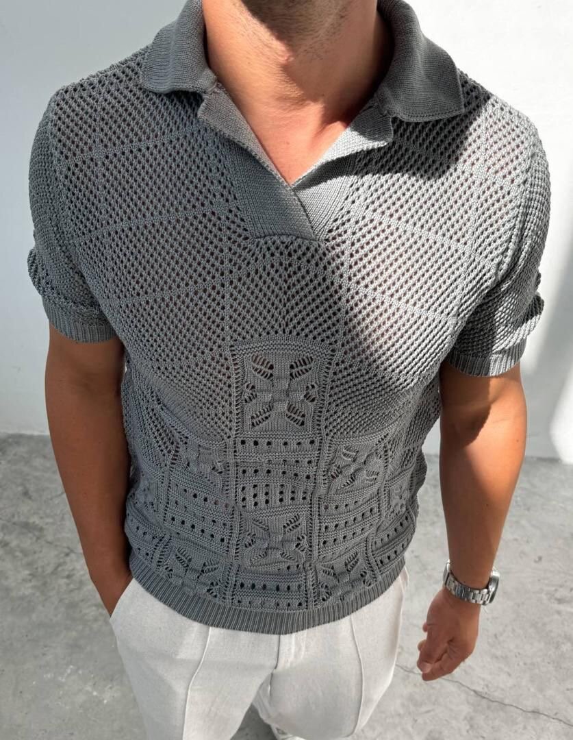 Découvrez ce polo en maille ajourée grise, parfait pour un look à la fois décontracté et élégant. Fabriqué à partir de matériaux de haute qualité pour un confort optimal. Idéal pour les sorties estivales ou les événements décontractés chic. Ce polo s'accorde facilement avec un pantalon ou un short. Soyez à la mode et confiant avec ce choix polyvalent.