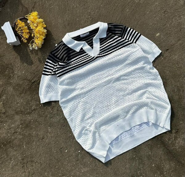 Découvrez ce polo en tricot léger, idéal pour un look estival chic. Fabriqué en coton de qualité, il assure confort et élégance. Parfait pour les journées chaudes, ce polo est un choix incontournable pour un style décontracté et raffiné. Associez-le avec un pantalon en lin pour un look complet.