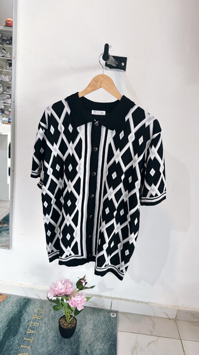 Ce cardigan stylé avec motif géométrique noir et blanc est parfait pour ajouter une touche d'élégance à votre tenue. Fabriqué avec des matériaux de haute qualité, il est confortable et chic. Idéal pour les occasions décontractées ou pour donner une allure sophistiquée à votre look quotidien.