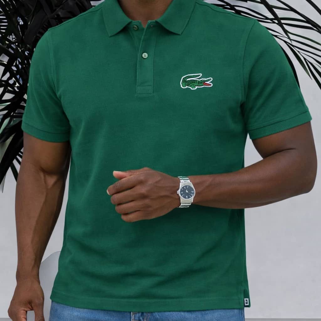 Polo Lacoste vert pour homme, confortable et élégant. Idéal pour une tenue décontractée ou semi-formelle. Fabriqué avec des matériaux de qualité pour un confort optimal.