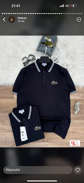 Polo noir avec col vert et détails blancs. Logo brodé sur le devant. Confortable et élégant, idéal pour les occasions décontractées.