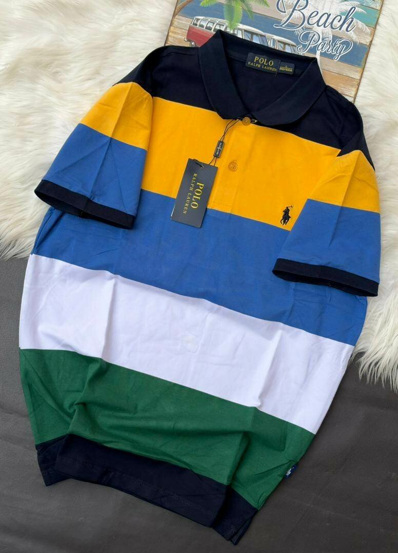 Polo Ralph Lauren pour homme, multicolore avec des bandes horizontales. Conçu pour un confort optimal et un style élégant, idéal pour les occasions décontractées.