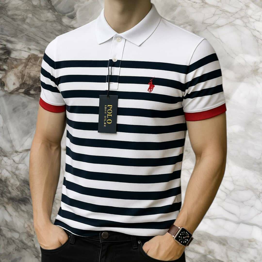Optez pour ce polo rayé élégant pour un look casual et sophistiqué. Fabriqué avec des matériaux de qualité, il offre un confort optimal tout au long de la journée. Parfait pour le bureau ou le week-end.
