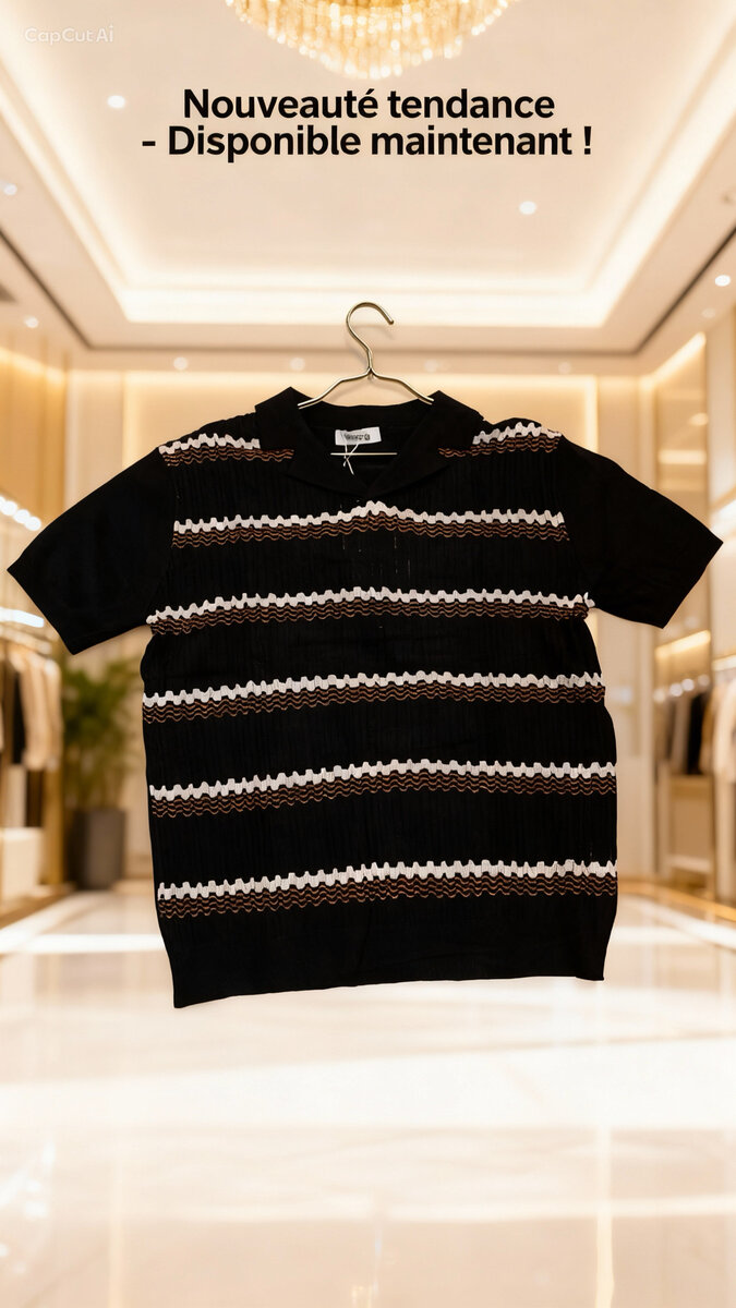 Découvrez notre polo rayé élégant en noir, parfait pour un style casual chic. Conçu avec des matériaux confortables, idéal pour toutes les occasions. Un incontournable dans votre garde-robe!