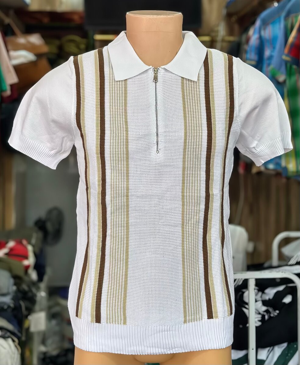 Découvrez ce polo élégant à rayures rétro, parfait pour un look casual chic. Confectionné en coton doux, il offre confort et style. Sa fermeture éclair distinctive ajoute une touche de modernité. Idéal pour les sorties décontractées ou les événements estivaux.