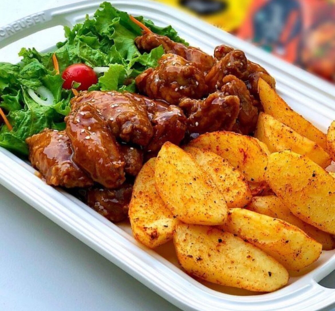 Le plats est composé de sauté de pomme de terre, viande de bœuf et de salade servi avec un morceau de pain
