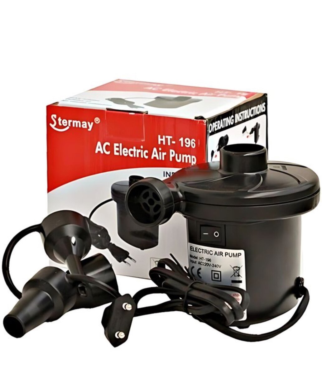 Cette pompe à air électrique Stermay garantit un gonflage rapide et efficace de vos articles gonflables préférés. Idéale pour les piscines, matelas et bateaux gonflables, elle est dotée de plusieurs embouts pour s'adapter à différents types de valves. Compacte et facile à transporter, elle est parfaite pour vos activités de plein air.