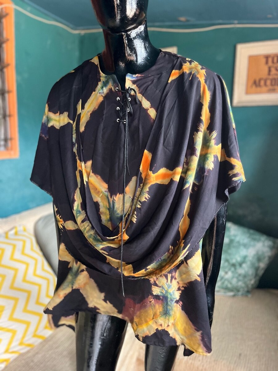 Adoptez un look unique avec ce poncho bohème en motif tie-dye éclatant. Parfait pour ajouter une touche artistique à votre tenue décontractée. Léger et fluide, il s'accorde facilement avec jeans ou robes pour un style chic et décontracté.
