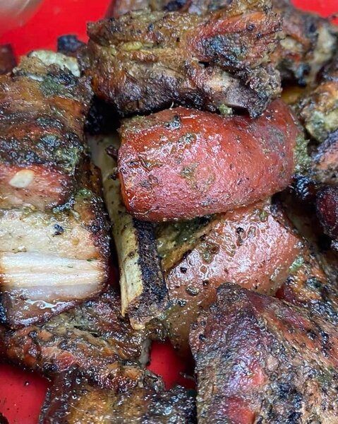 Porc Africain Braisé Assaisonné Aux Épices Du Cameroun + Attiéké LES PLATS SONT DISPONIBLES JUSQU'À 21HEURES