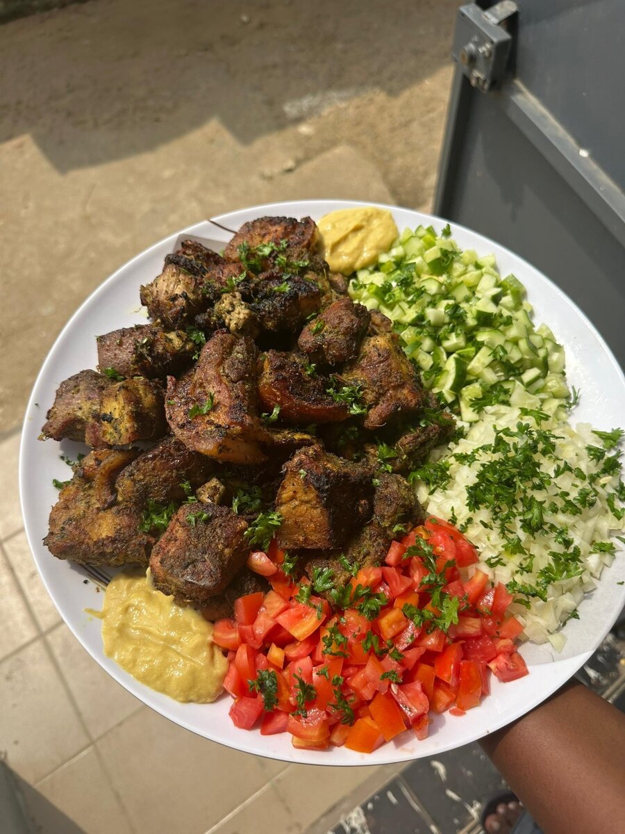 Découvrez nos délicieuses viandes de porc marinées et braisé à la perfection, accompagnées dune portion d'attiéké de légumes frais. Parfaites pour un repas convivial en plein air ou pour impressionner vos invités lors de votre prochain barbecue. Un vrai régal pour les amateurs de viandes épicées et juteuses.