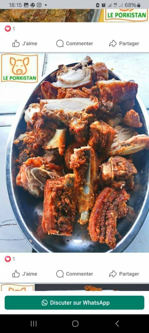 Savourez un délicieux Porc sauté aux épices et légumes locaux, richement épicé préparé avec soin par Le Porkistan. Accompagnement : attieke