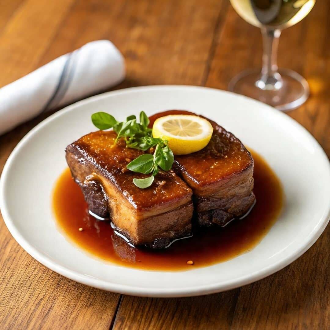 Le porc rôti, un plat savoureux et tendre, cuit à la perfection pour révéler les saveurs intenses de la viande. La peau croustillante et dorée contraste avec la chair juteuse et parfumée, accompagnée d'une délicieuse attieké pour un repas complet et authentique.