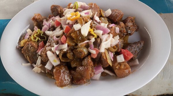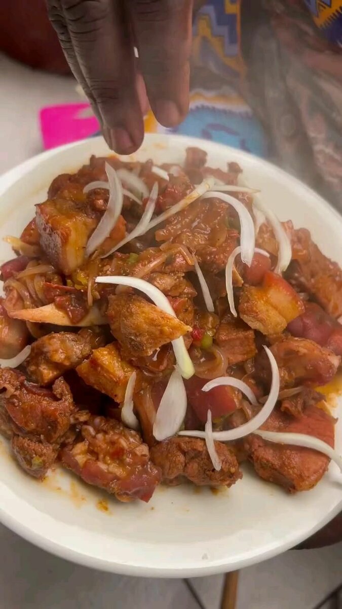Porc sauté + 1 accompagnement Attieké , Alloco ou igname