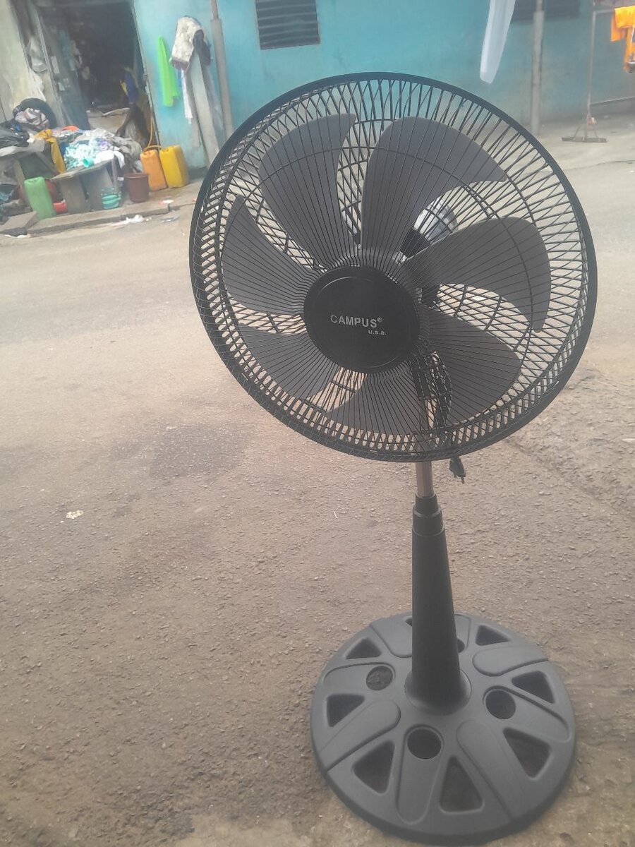 Stay cool with this powerful portable electric fan. Perfect for both home and office use, it offers adjustable settings and a sturdy base for stability. Ideal for refreshing airflow in any room.