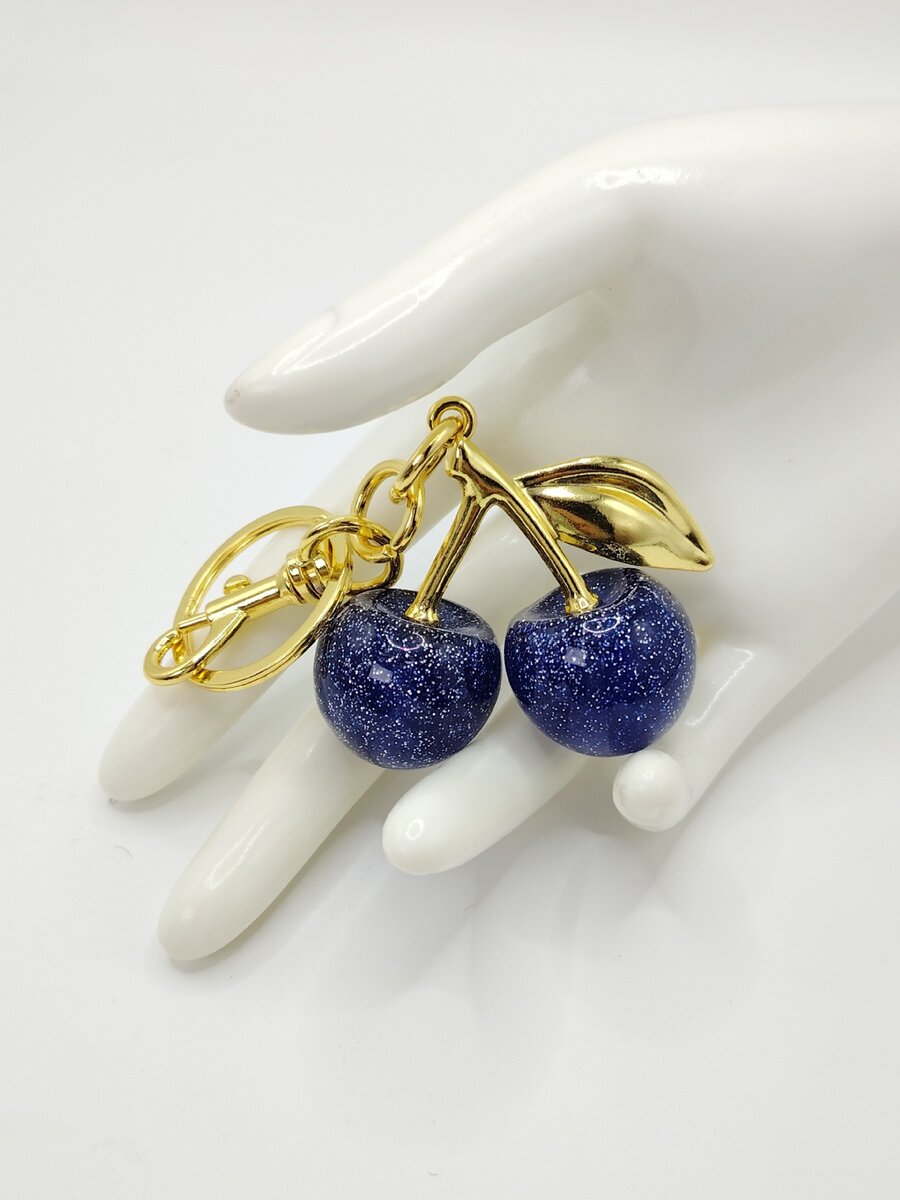 Porte clé en cristal en forme de cerise. Pendentif décoration sac