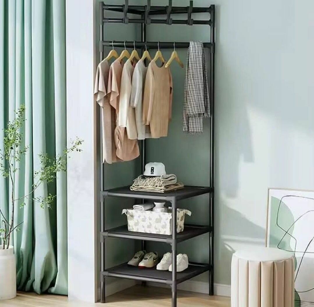 Porte-vêtements suspendu en métal à 4 niveaux pour chambre à coucher, étagère à chaussures au sol