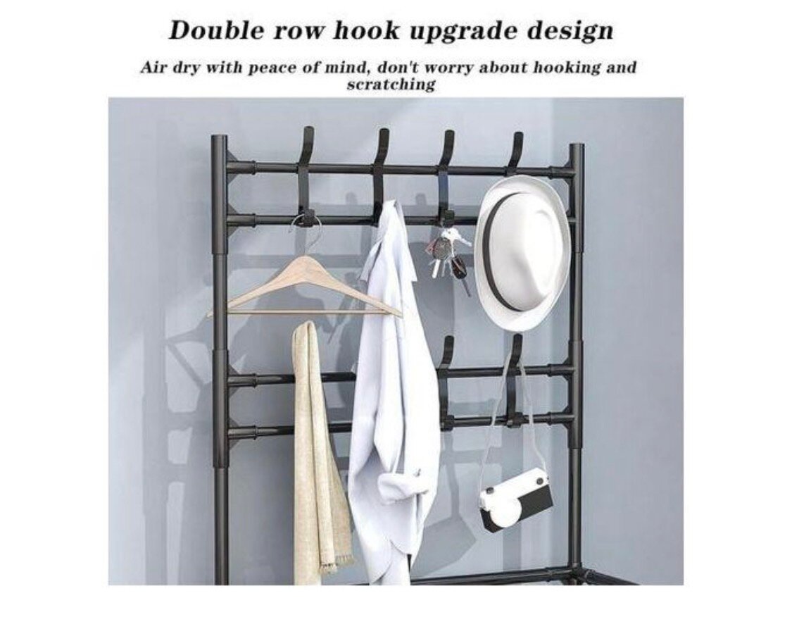 Optimisez votre entrée avec ce porte-chaussures et étagère de rangement multifonctionnel. Conçu pour un maximum de stockage, il dispose de multiples niveaux pour chaussures, d'étagères pour vêtements et accessoires, ainsi que de crochets pour suspendre vos affaires. Fabriqué en métal robuste, il est à la fois élégant et durable. Idéal pour garder votre entrée organisée et votre maison bien rangée.