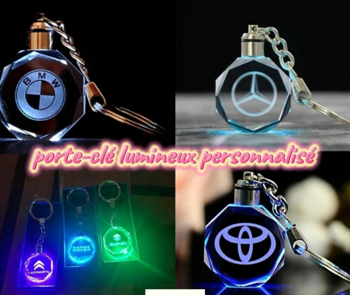 Optez pour ce porte-clé lumineux personnalisable avec logo de voiture. Parfait pour les amateurs d'automobile, il ajoute une touche moderne et unique à vos clés. Idéal comme cadeau ou pour garder vos clés visibles dans l'obscurité. Disponible avec logos populaires.