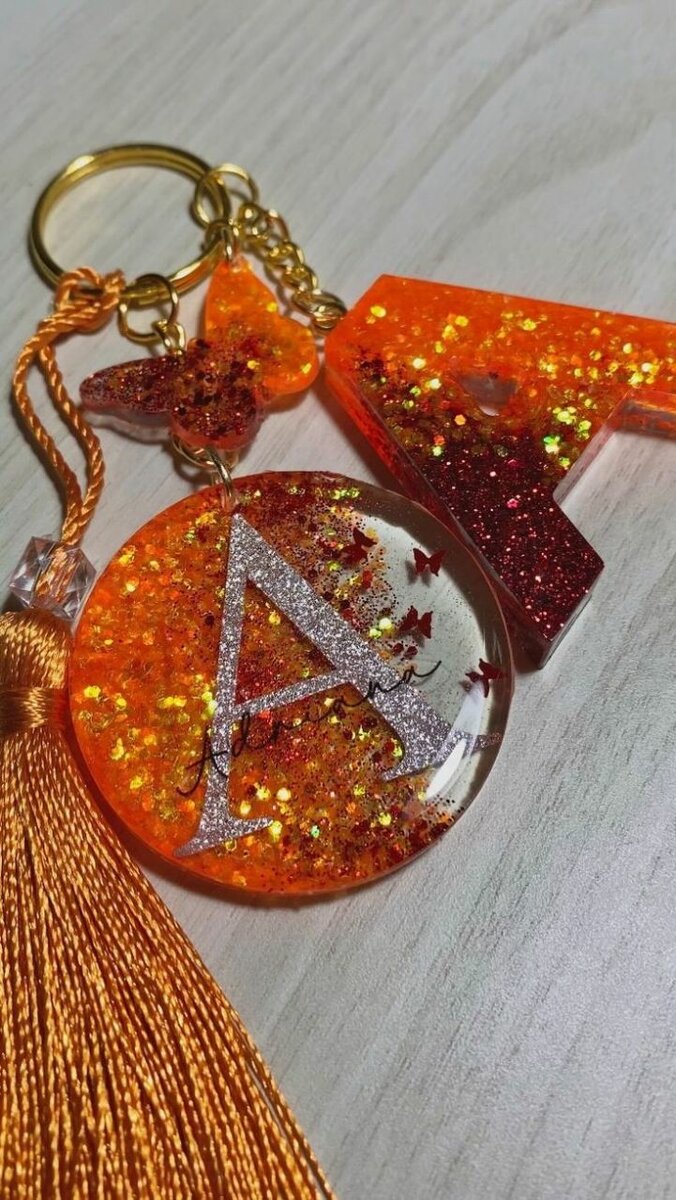 Accentuez votre style avec ce porte-clés en résine, ornée de paillettes dorées et d'une charmante lettre A. Parfait pour personnaliser vos sacs ou clés. Idéal pour un cadeau unique et élégant.