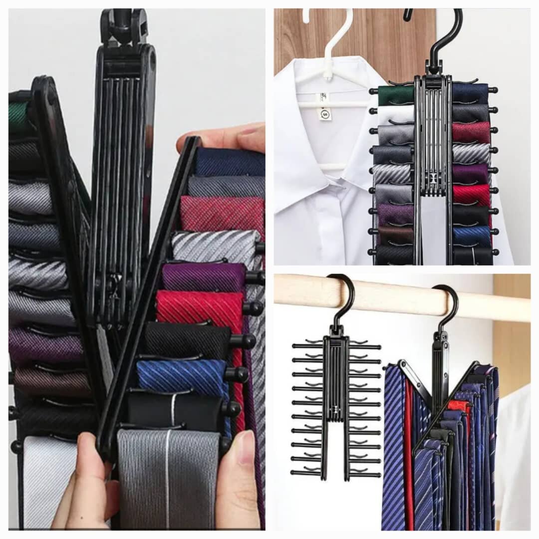 Organisez vos cravates avec style grâce à ce porte-cravates rotatif. Compact et robuste, il vous permet de ranger jusqu'à 20 cravates. Idéal pour les dressings modernes, ce support maximise l'espace et ajoute une touche de sophistication à votre garde-robe. Parfait pour l'homme moderne.