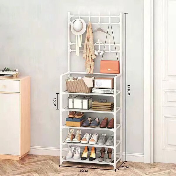Optimisez votre espace avec ce porte-manteau élégant et pratique, doté de crochets pour vêtements et étagères pour chaussures. Idéal pour l'entrée ou le couloir, il allie esthétisme et fonctionnalité. Dimension: 155x60x26 cm. Transformez votre organisation intérieure!