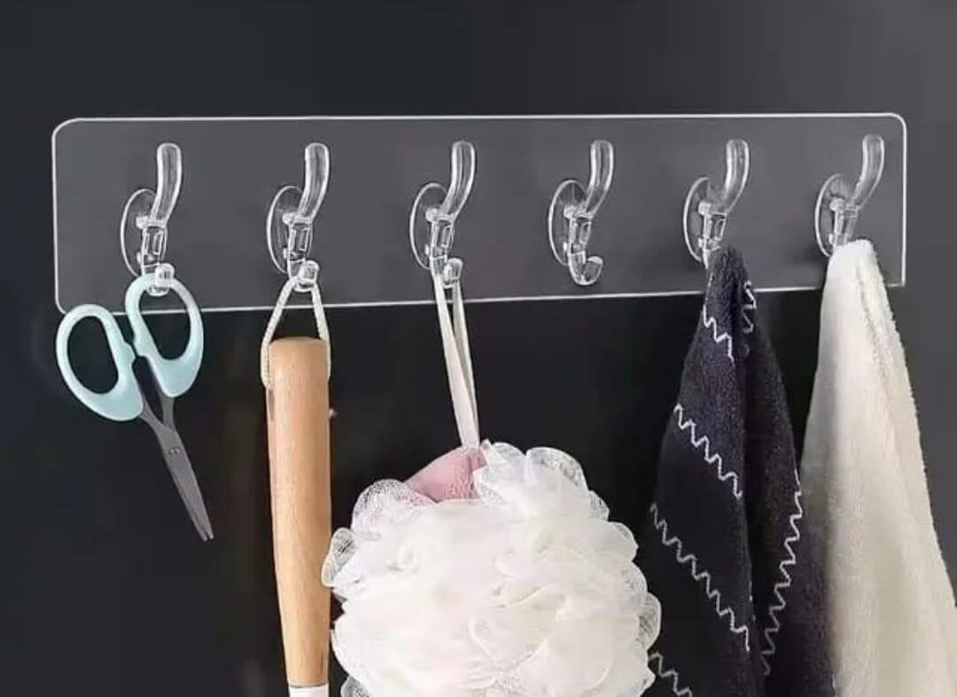 Ce porte-manteaux adhésif mural est parfait pour organiser serviettes et accessoires dans la salle de bain ou la cuisine. Fabriqué en plastique transparent robuste, il s'installe facilement sans outils. Chic et pratique, il optimise l'espace et garde vos objets à portée de main.
