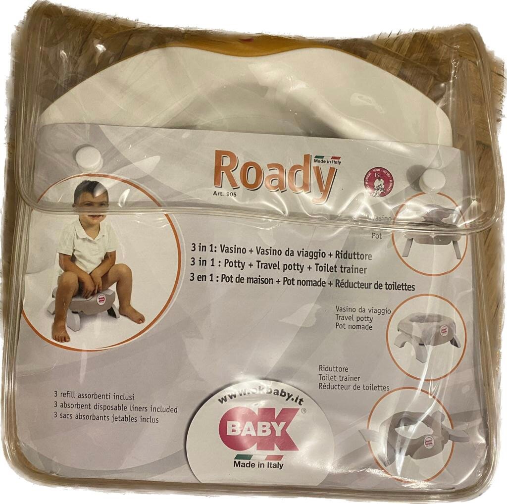 Pot bébé 3 en 1 Roady, idéal pour l'apprentissage de la propreté. Réducteur de toilette confortable et facile à utiliser. Fabriqué en Italie.