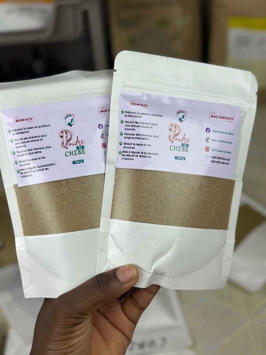 Transformez vos cheveux avec la poudre Chebe naturelle ! Parfait pour renforcer, hydrater et favoriser la croissance des cheveux. Idéale pour tous types de cheveux. Mode d'emploi facile, dites adieu aux cheveux secs et cassants !