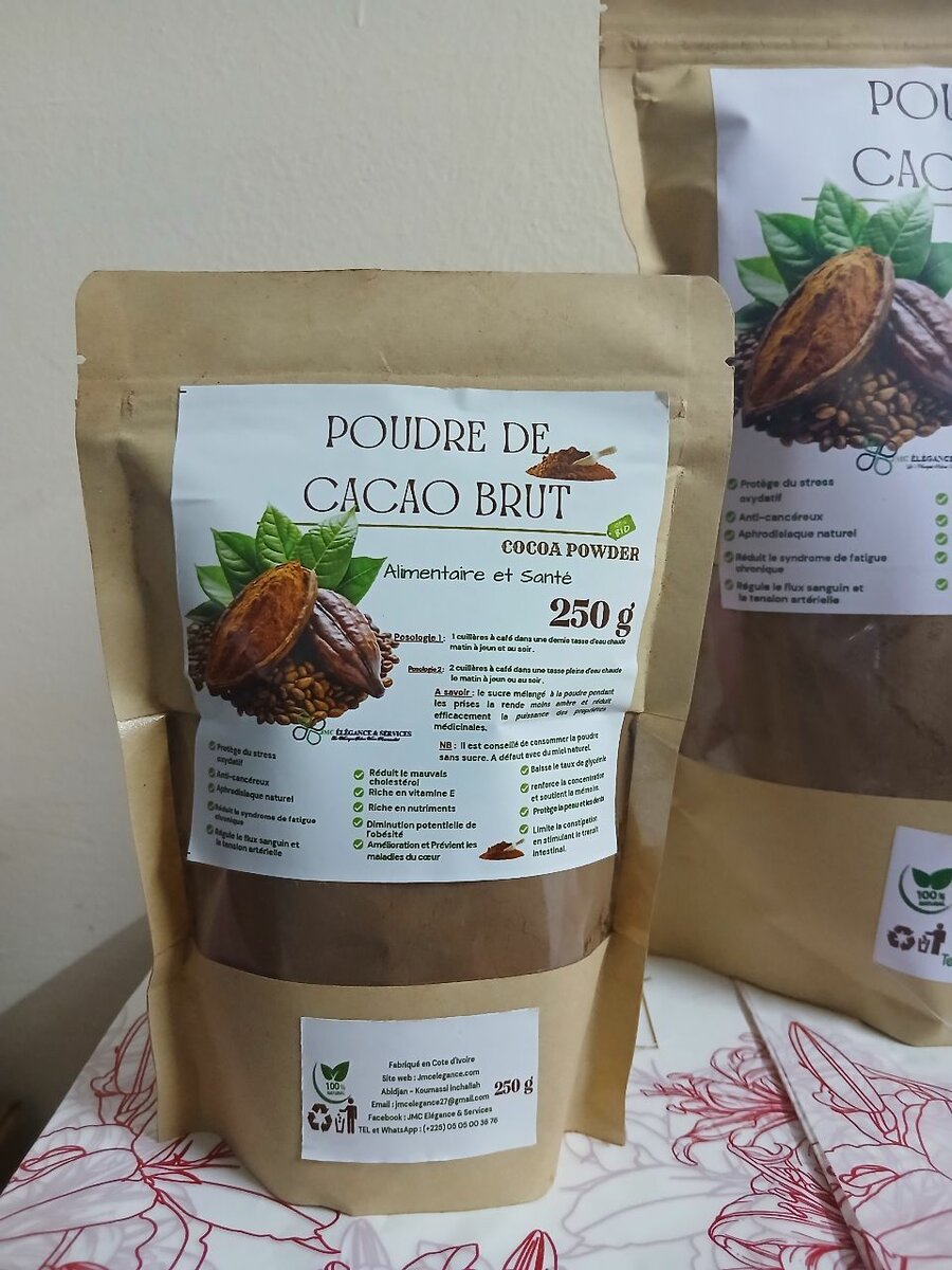 Découvrez notre poudre de cacao brut, riche en antioxydants et idéale pour toutes vos recettes chocolatées. Un choix sain pour les boissons chaudes, desserts et pâtisseries. Convient pour les amateurs de cuisine gourmande et équilibrée.