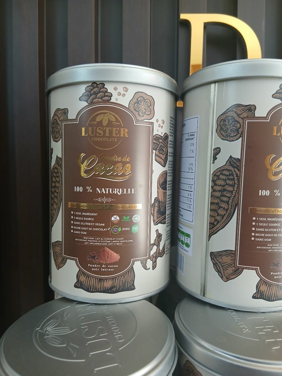 Découvrez le riche goût du cacao 100% naturel avec la poudre Luster. Parfaite pour vos boissons chaudes et desserts.