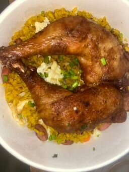 Découvrez notre délicieux poulet rôti servi avec un riz parfumé, idéal pour un repas savoureux et réconfortant. Parfait pour les dîners en famille ou les occasions spéciales. Savourez la tendreté du poulet et les arômes riches du riz.