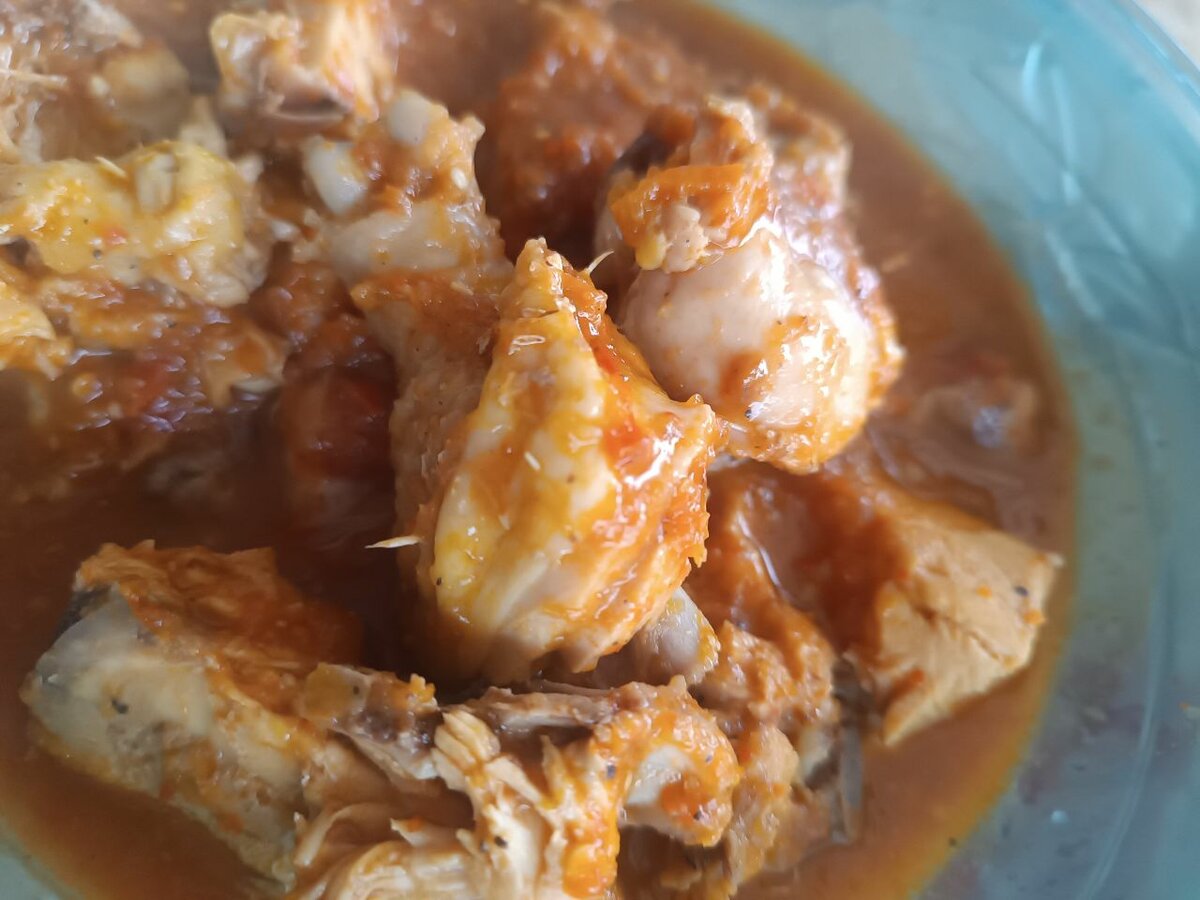 Savourez ce délicieux poulet en sauce épicée, parfait pour votre prochain repas. La viande tendre est cuisinée avec des épices aromatiques qui éveilleront vos papilles. Idéal pour un dîner convivial ou un repas de famille, ce plat allie saveur et satisfaction. Préparé avec soin pour offrir une expérience culinaire unique et pleine de chaleur. Essayez-le avec du riz ou des légumes pour un repas complet.