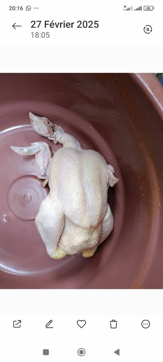 Découvrez notre poulet frais entier, parfait pour vos recettes gourmandes. Idéal pour rôtis, soupes ou plats mijotés, ce poulet offre une chair tendre et savoureuse. Source de protéines de haute qualité pour une alimentation équilibrée.