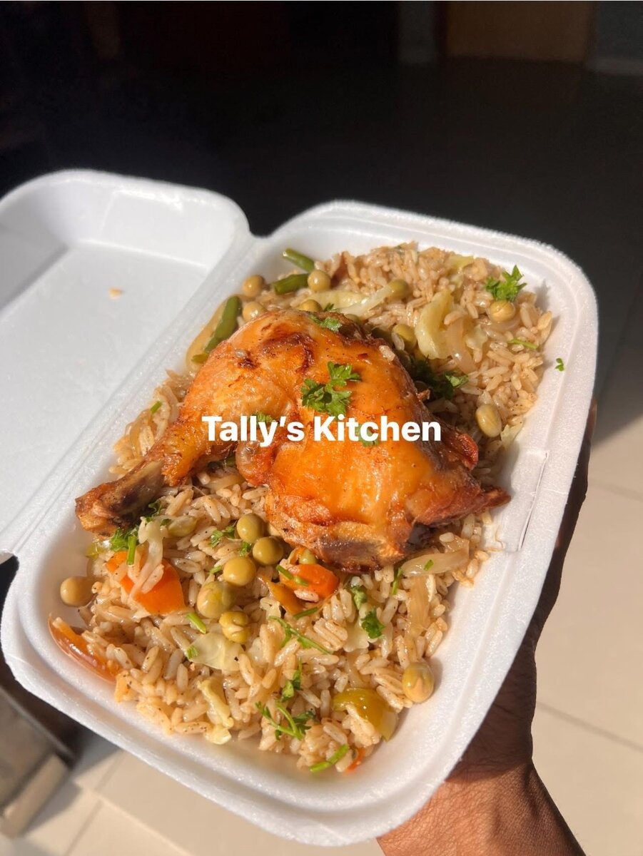 Savourez ce délicieux riz frit garni de légumes croquants et accompagné d'un succulent poulet . Parfait pour un repas rapide et savoureux que ce soit au bureau ou à la maison. Fraîchement préparé par Tally's Kitchen, ce plat saura ravir vos papilles.