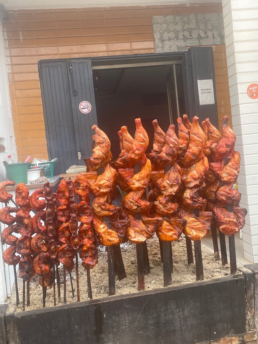 Savourez ce délicieux poulet rôti en brochette, idéal pour un barbecue ou un repas convivial. Préparé avec soin, il offre une tendreté incomparable et un goût fumé irrésistible. Parfait pour les amateurs de viande grillée!