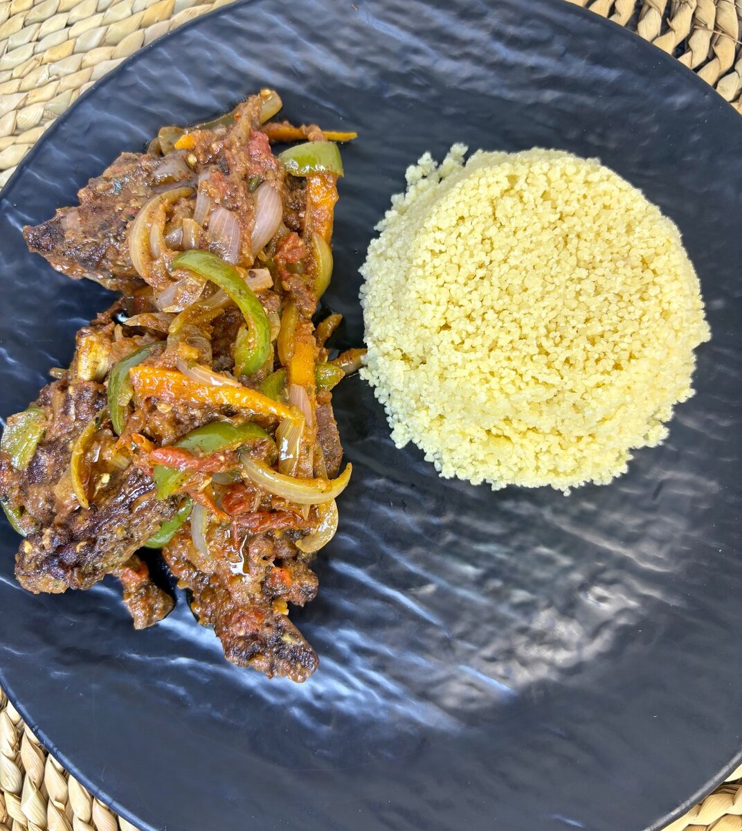 Savourez notre succulent plat de poulet sauté accompagnée de attieke . Parfaitement assaisonnée avec des légumes frais