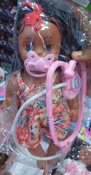 Découvrez cette adorable poupée bébé avec cheveux afro et tenue tropicale colorée. Parfaite pour stimuler l'imagination des enfants et enrichir leurs jeux de rôle. Idéale pour un cadeau mémorable.