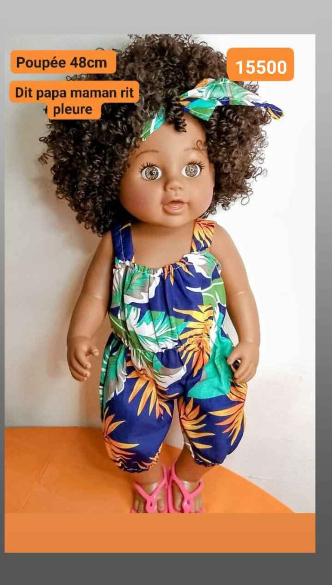 Cette poupée interactive de 48cm rit et pleure pour une expérience de jeu réaliste. Parfaite pour les enfants, elle vient avec une tenue colorée et un bandeau assorti, idéale pour stimuler l'imagination et le jeu de rôle.