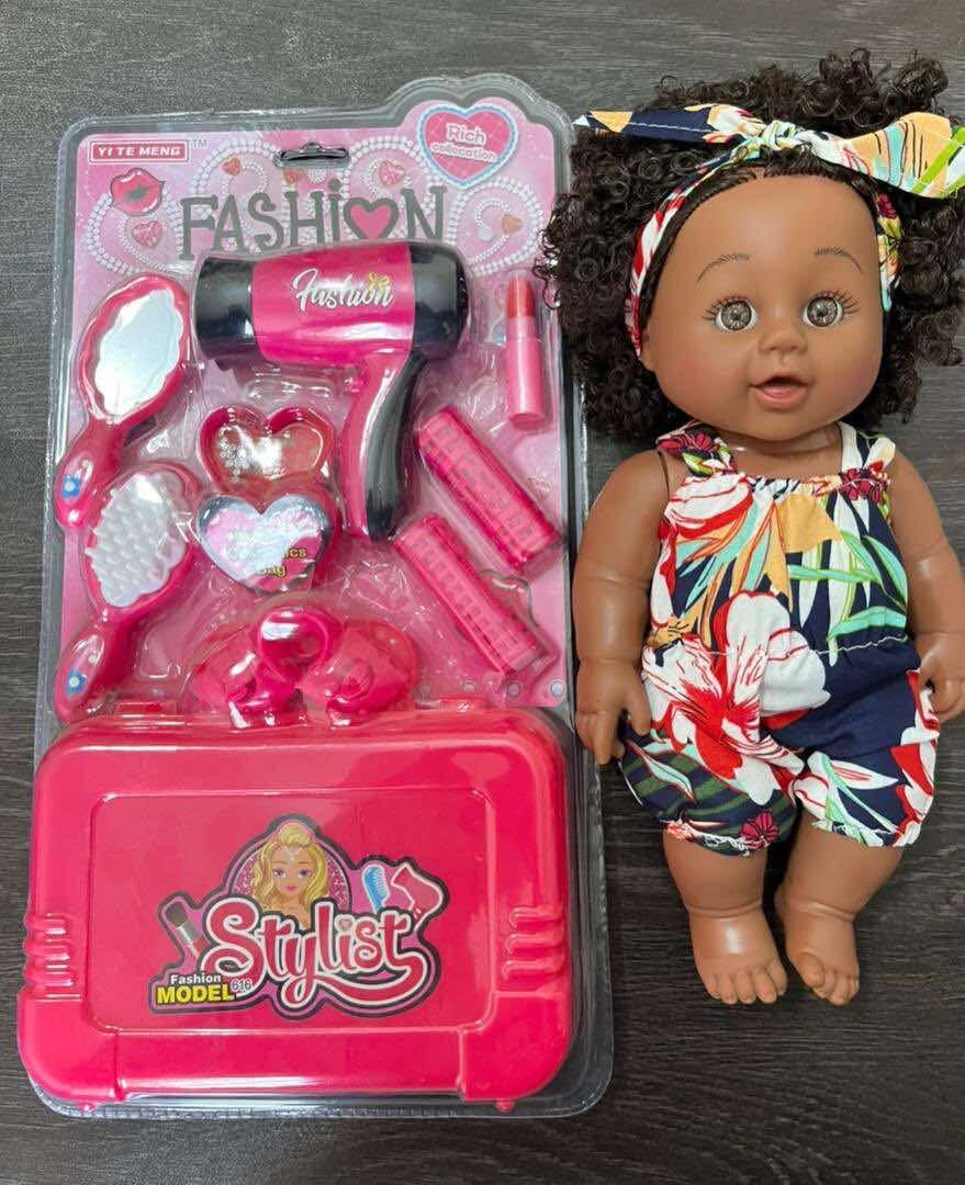 Poupée Africaine avec accessoires disponible, 30cm elle parle, rit et pleure