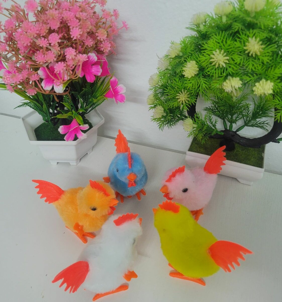 Poussin en mouvement, jouet amusant, sautant, marchant et co