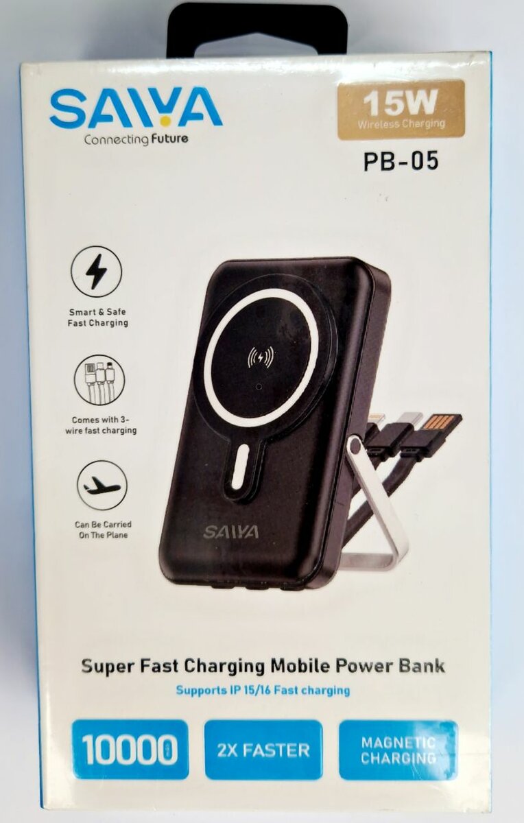 Chargez rapidement avec le Power Bank SAWA 15W. Capacité de 10000mAh, compatible IP15/16, idéal pour voyager.