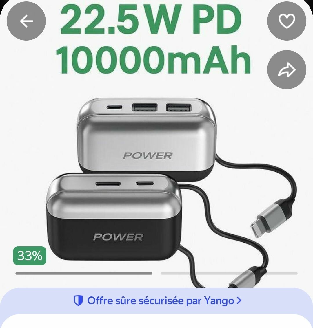 Chargeur portable 10000mAh avec technologie de charge rapide de 22.5W. Idéal pour smartphones, tablettes et autres appareils USB. Compact et facile à transporter pour une utilisation quotidienne.