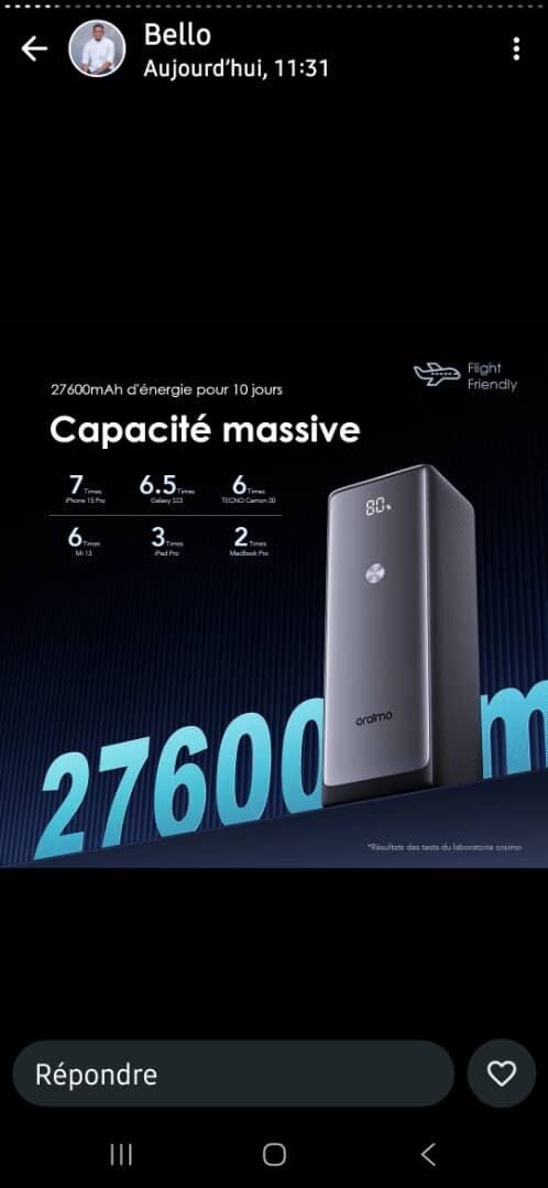 Batterie externe ultra-puissante de 27600mAh avec charge rapide 130W Type-C. Parfait pour ordinateurs portables et téléphones, offrant une compatibilité avec 1000+ appareils. Affichage intelligent, idéal pour le voyage.