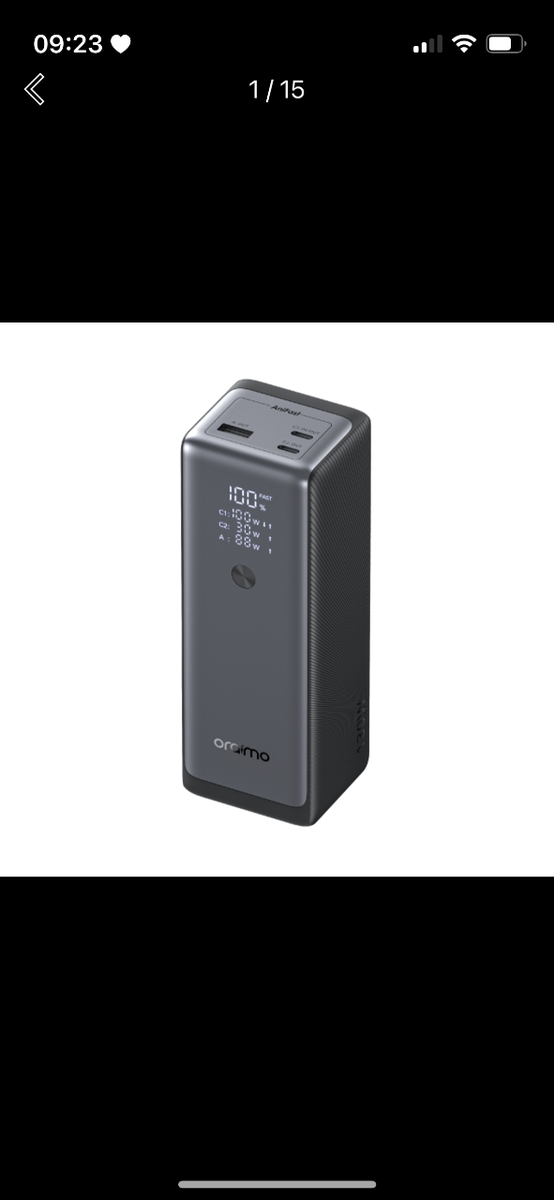 Power Bank ultra performant oraimo 27600mAh, idéal pour charger plusieurs appareils simultanément. Compatible avec plus de 1000 appareils. Recharge complète en 1,5 heure et affichage LED pratique.