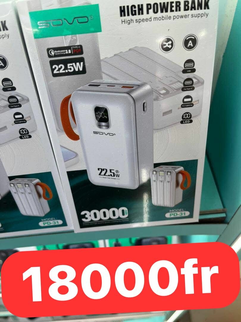 Découvrez notre Power Bank de 30000mAh avec charge rapide PD 22.5W. Parfait pour recharger vos appareils rapidement en déplacement. Son design compact s'adapte à toutes les situations, que ce soit pour une utilisation quotidienne ou lors de vos voyages. Compatible avec une variété d'appareils, c'est le compagnon idéal pour ne jamais être à court de batterie. Sa capacité élevée garantit plusieurs recharges complètes de votre smartphone.