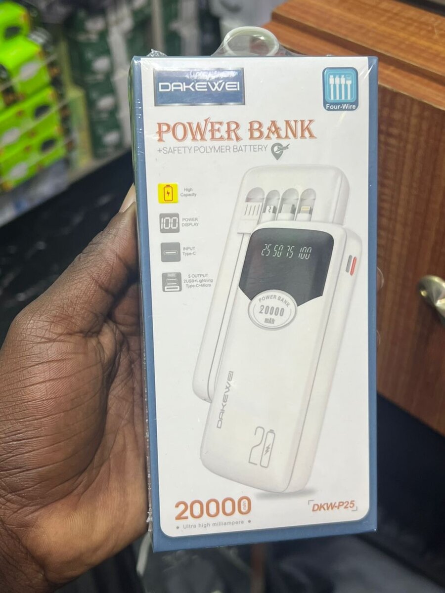 Power bank Dakewei 20000mAh avec affichage numérique et plusieurs sorties USB pour recharger tous vos appareils. Idéal pour les voyages et les déplacements.