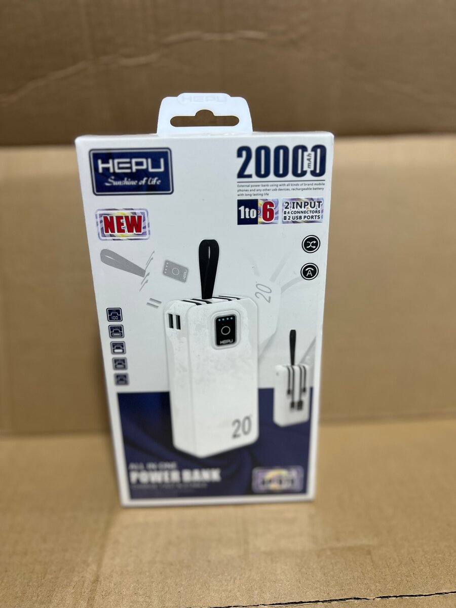 Chargez vos appareils rapidement avec ce Power Bank HEPU de 20000mAh. Idéal pour les voyages, il offre plusieurs ports pour une compatibilité maximale. Conception compacte pour un transport facile.