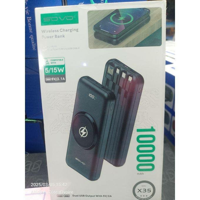 Découvrez notre Chargeur Power Bank de 10000mAh avec charge sans fil. Compatible 5V/2.1A et 5/15W pour une recharge rapide et efficace. Idéal pour vos déplacements.